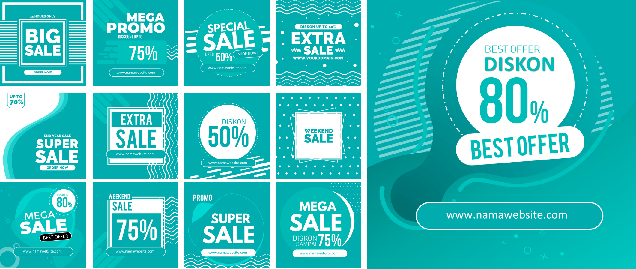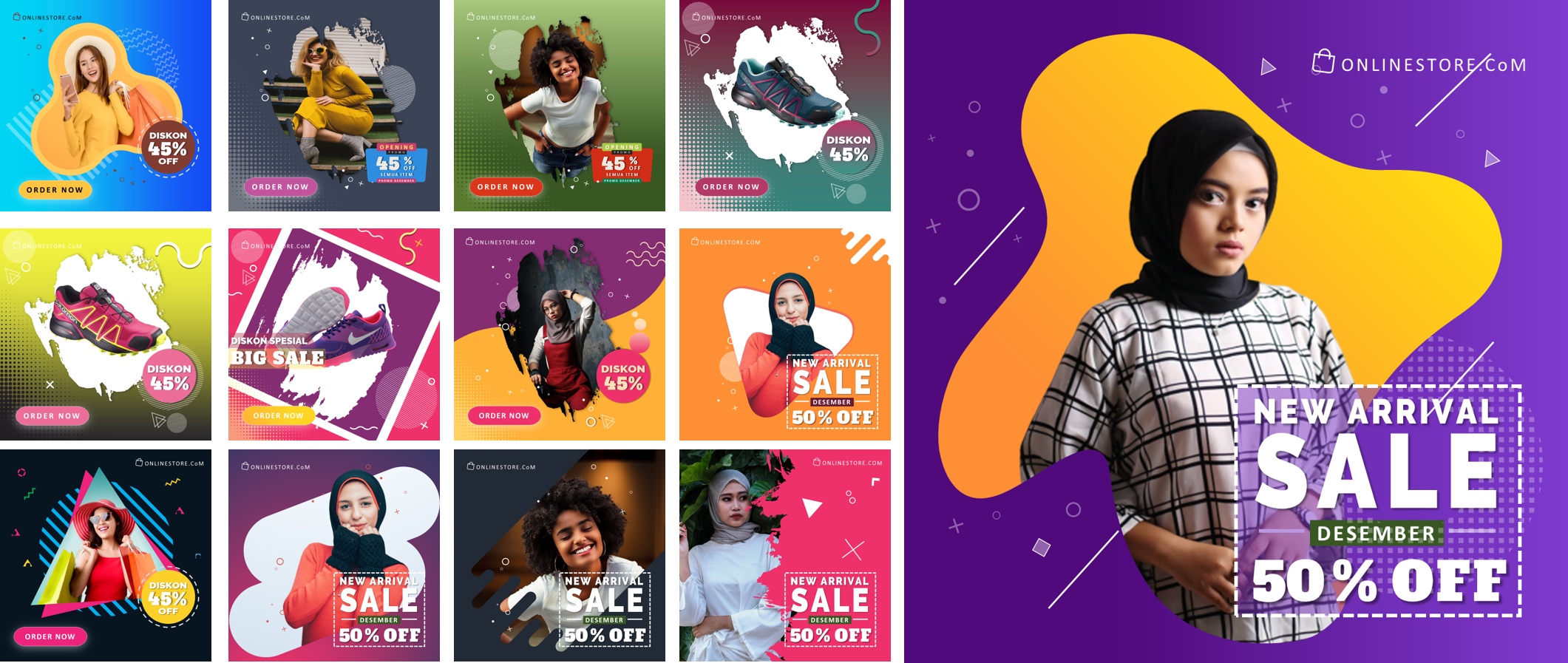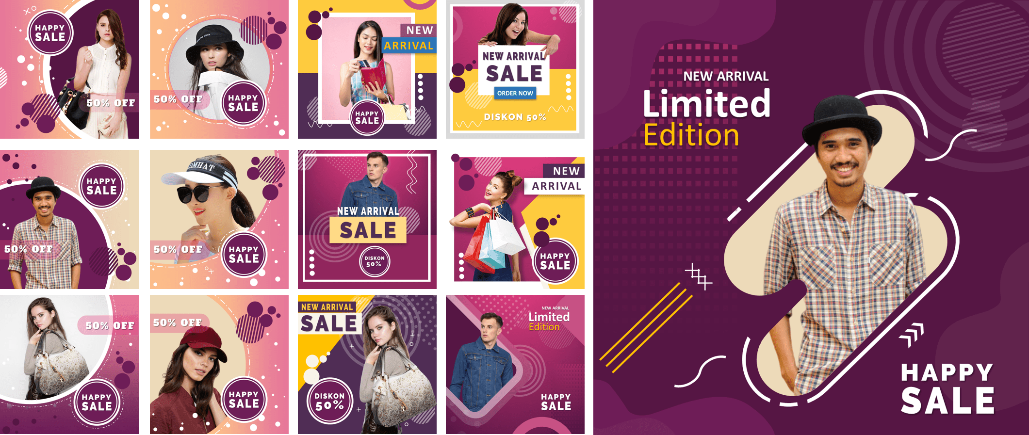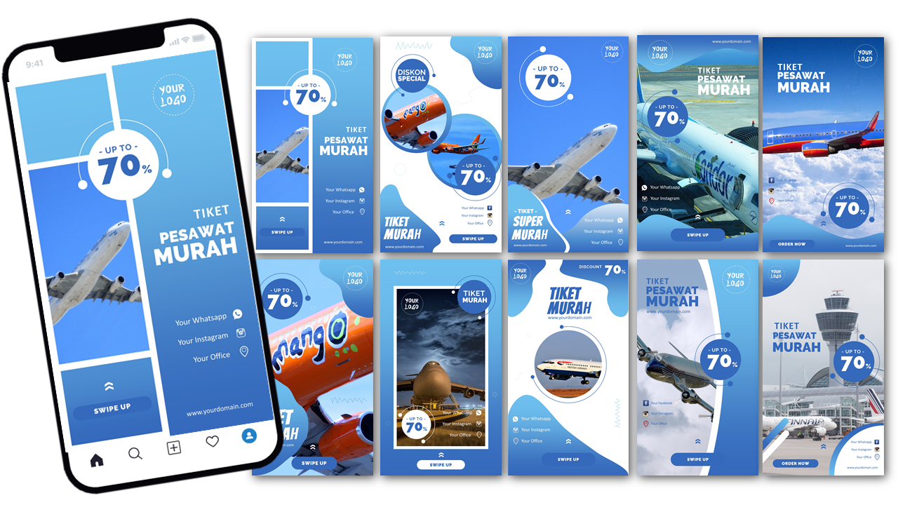 Ini adalah PAKET DESAIN PREMIUM yang berisi template-template desain powerpoint untuk membantu Anda membuat desain banner sosial media dengan mudah karena dibuat hanya dengan menggunakan powerpoint