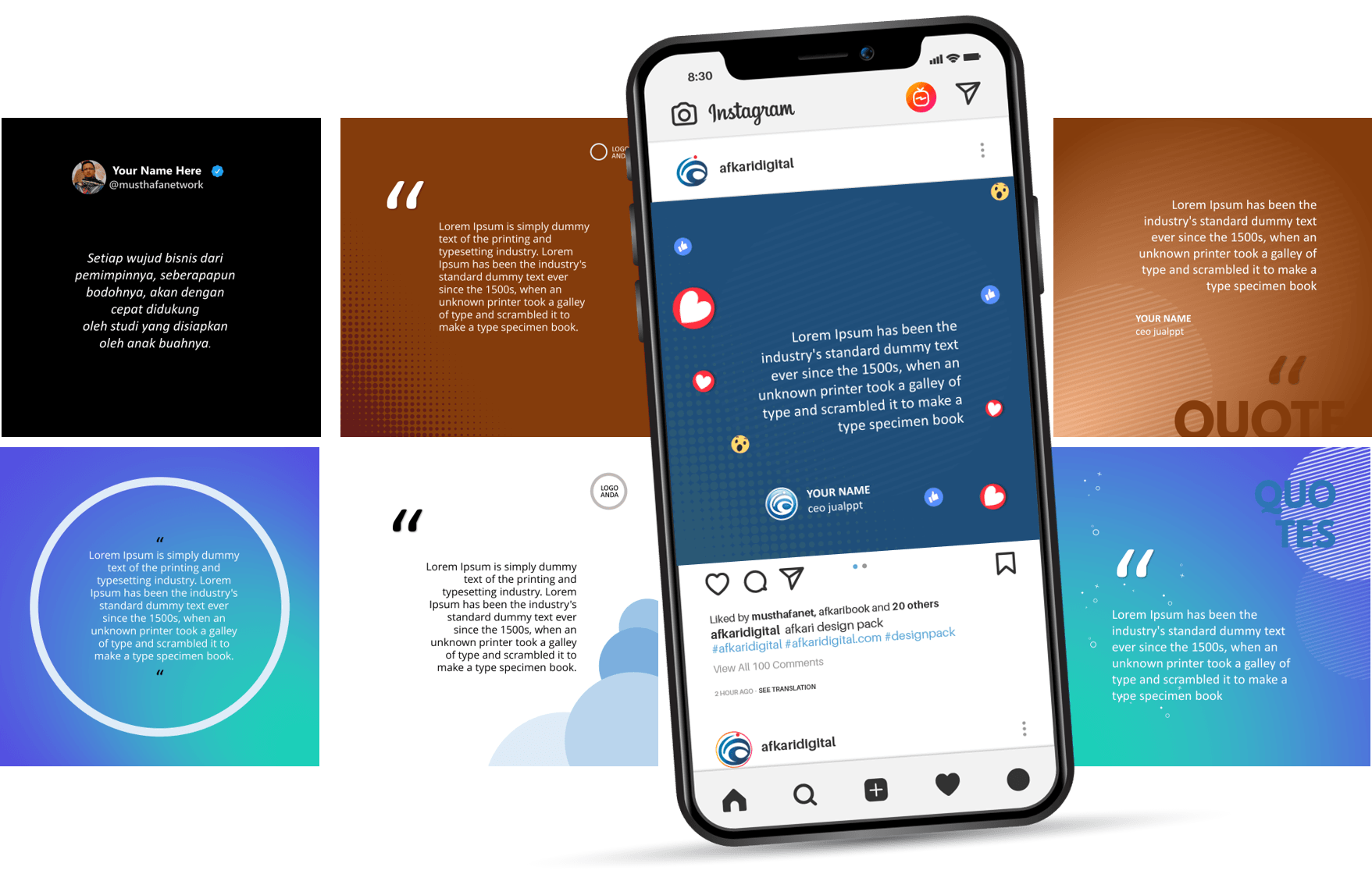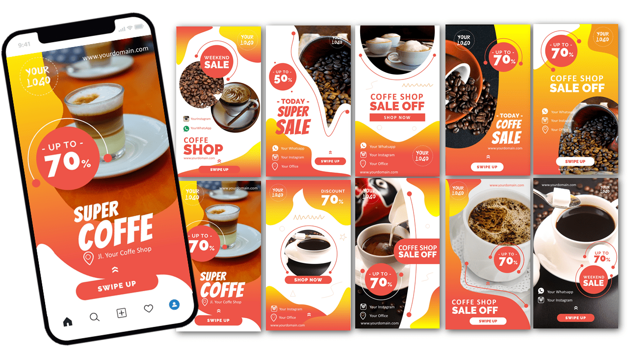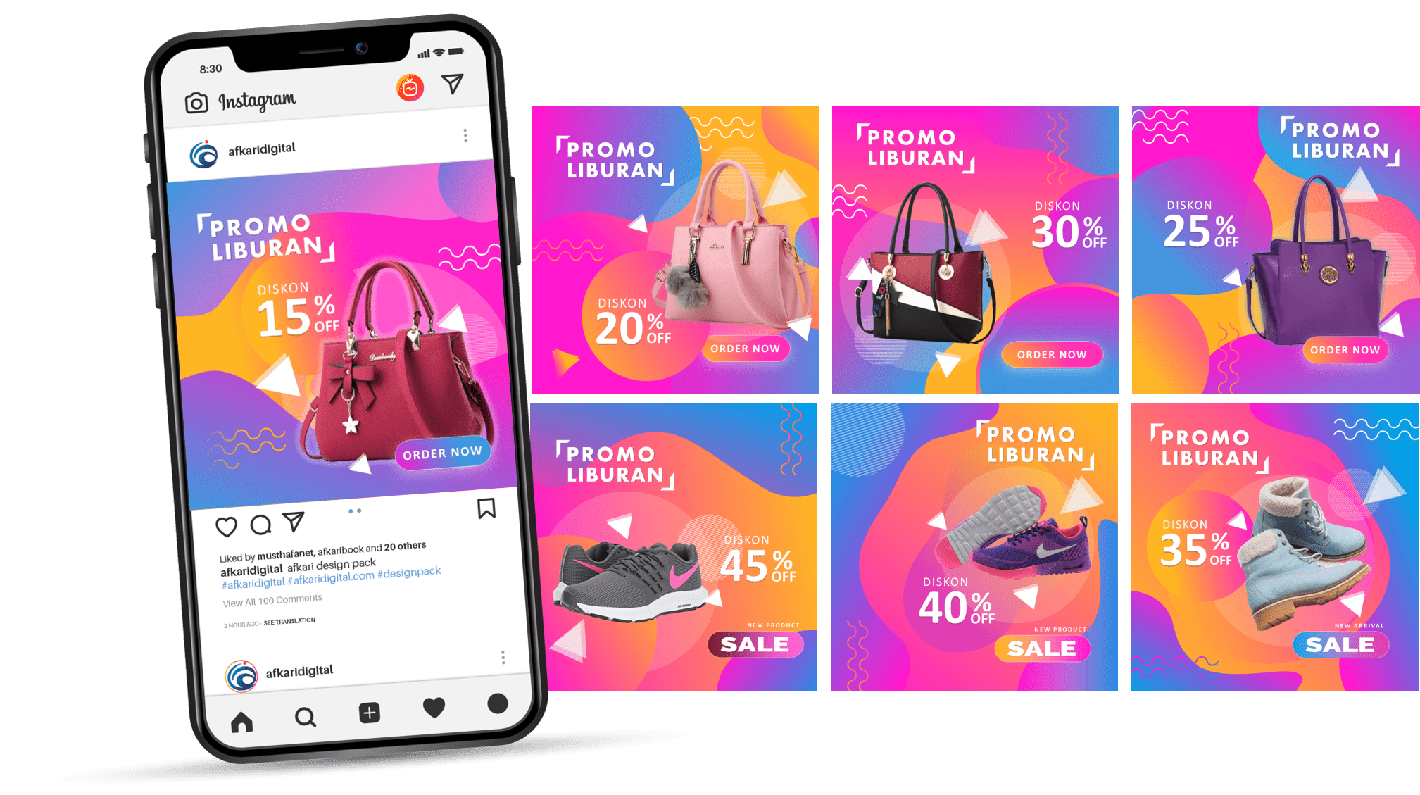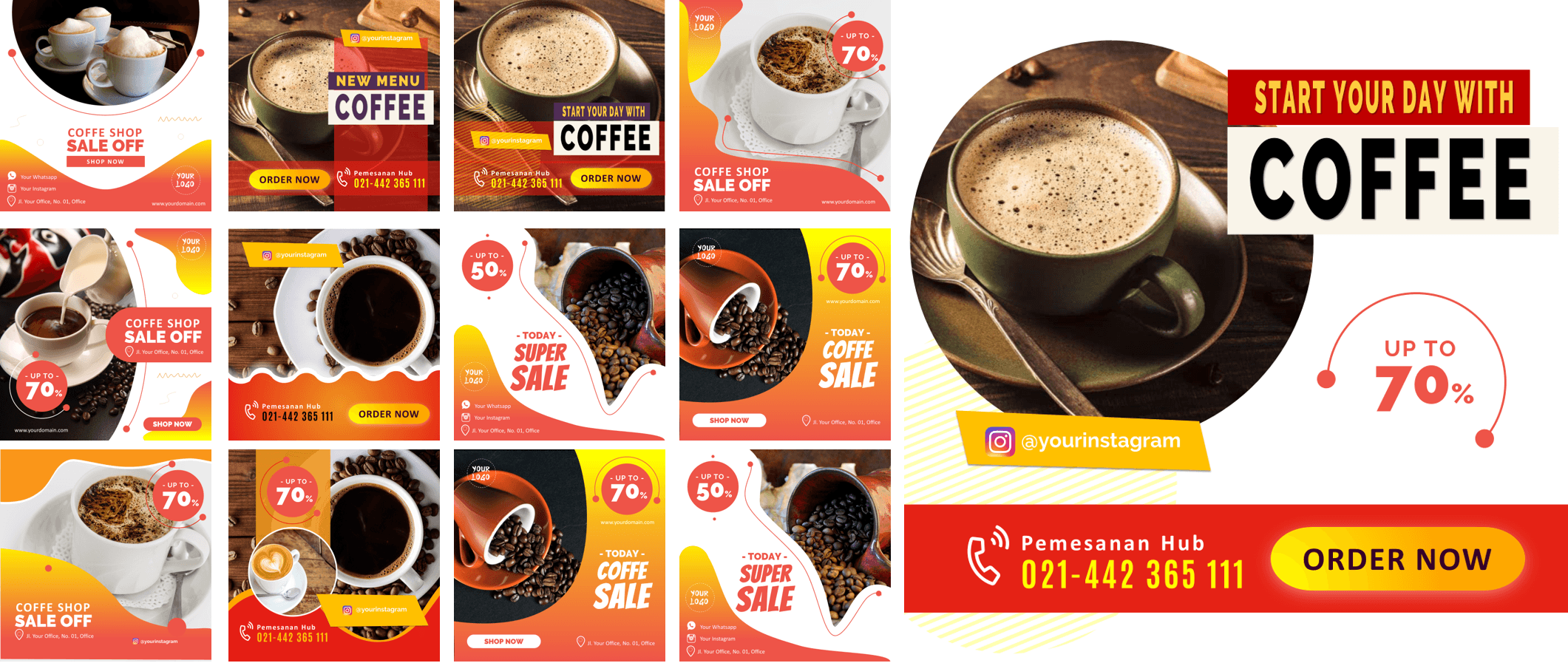 Ini adalah PAKET DESAIN PREMIUM yang berisi template-template desain powerpoint untuk membantu Anda membuat desain banner sosial media dengan mudah karena dibuat hanya dengan menggunakan powerpoint